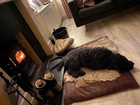Fire is lit, dog is panned out on shaggy sheepskin rug in front of it. That’s where the idyll ends, cos the telly is on and Himself is watching soccer – (granted he doesn’t have it easy either. Things are bad when he’s watching the women’s FA cup final … Don’t ask.. suffice to say they all have long hair and appear to be flat chested – and yes I’m allowed to be pass remarkable. I’m running out of usable letters in the alphabet if we’re talking about cups …. (another story for another time perhaps🙄)